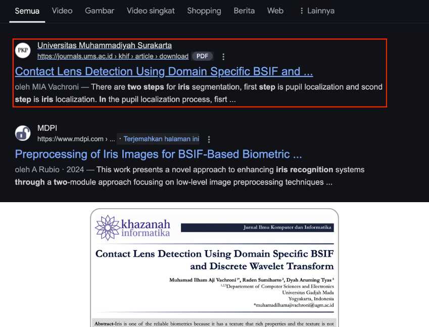 Deteksi Kontak Lensa Menggunakan Metode Binarized Statistical Image Features dan Discrete Wavelet Transform merupakan Penelitian TesisĀ di Universitas Gadjah Mada. Penelitian ini dipublikasi di Sinta 2.